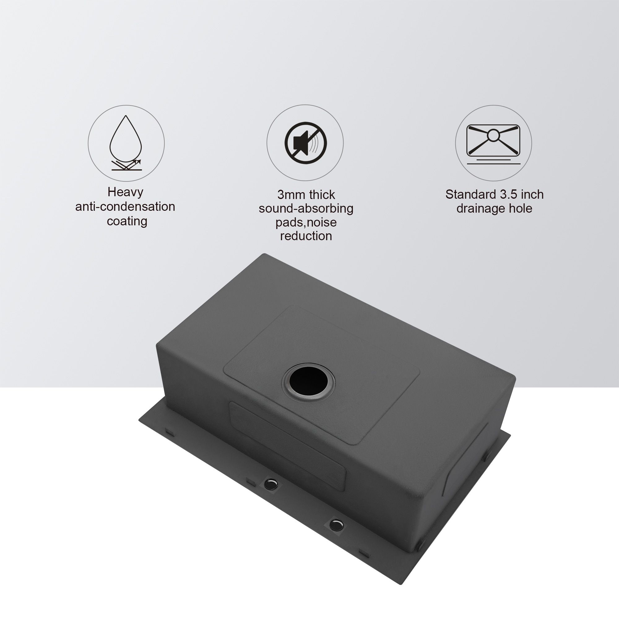 [ Drain Easily, Sound Proof ] -This 33' drop in kitchen single bowl sink with X-shaped diversion water design and a gently sloped bottom that prevents standing water inside the bowl fast drainage, no blockage.Five LARGE AND THICK rubber pads around the bottom to eliminate noise. Besides, full coating to prevent condensation and protect your cabinet.