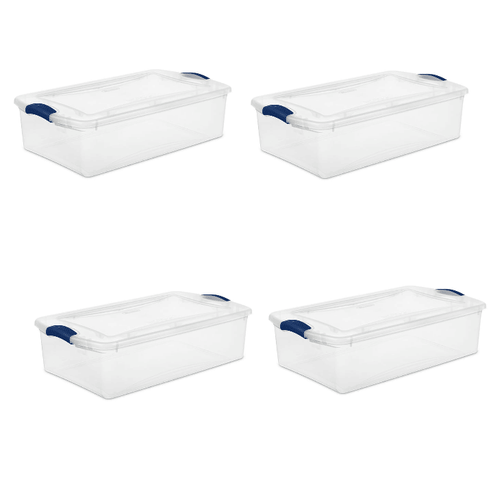 Home > 4 Pack 32 Quart Clear Underbed Storage Container with Latch Lid, Blue