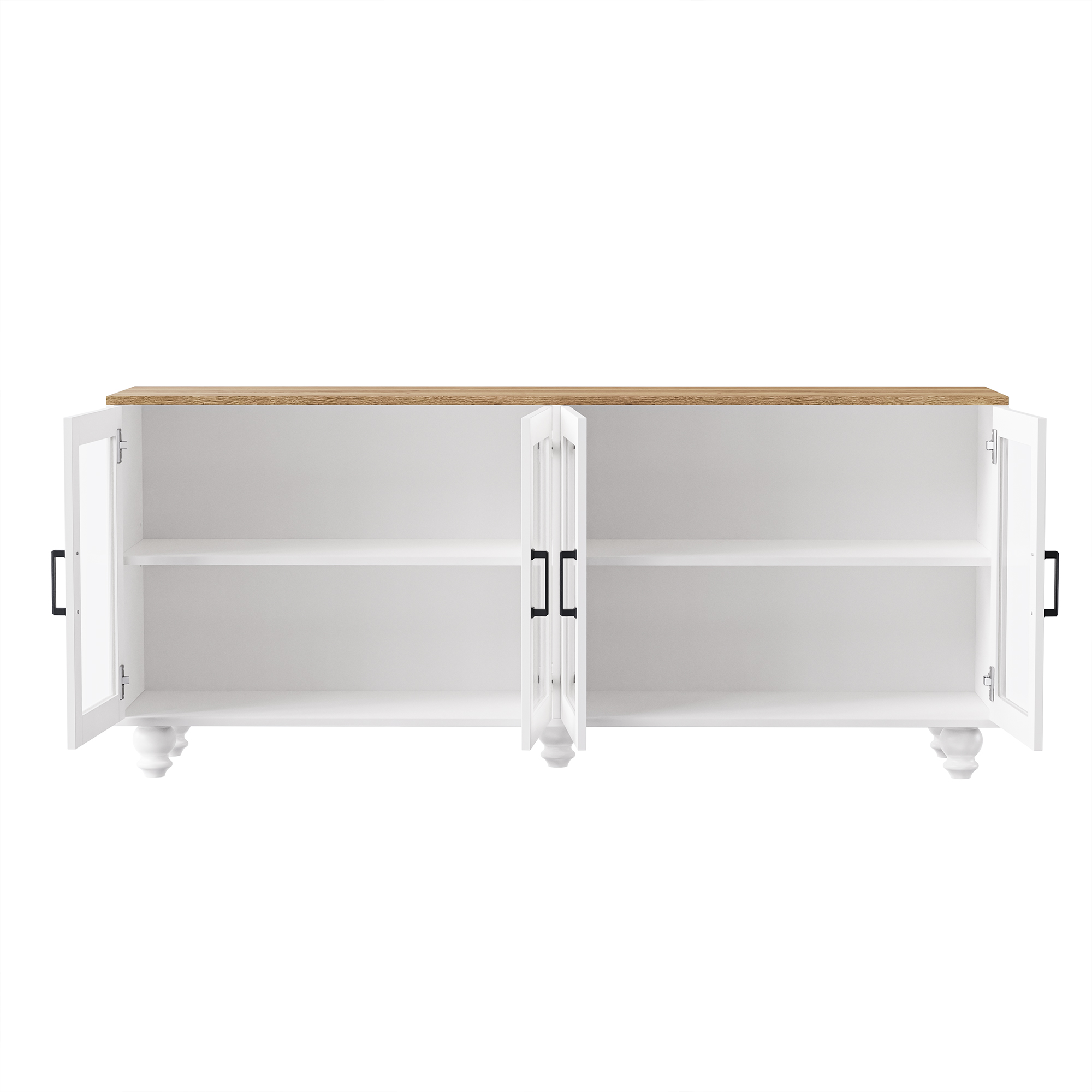 Product Name:ON-TREND Farmhouse TV Stand with Tempered Glass Doors for TVs Up to 70", Versatile Sideboard with Adjustable Shelves, Elegant Buffet Cabinet with 5 Solid Wood Gourd-Shaped Legs for Living Room, White