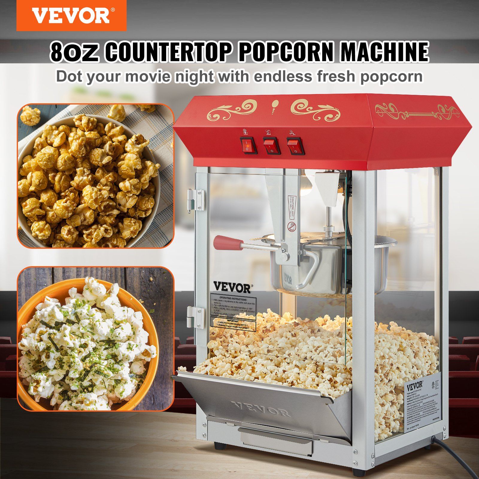 VEVOR Popcorn Maker, 850W Popcorn Popper Machine, 8 Oz Kettle Makes 48 Cups per Batch, Countertop Popcorn Maker with Tempered Glass, Includes 4 Scoops VEVOR Popcorn Maker, 850W Popcorn Popper Machine, 8 Oz Kettle Makes 48 Cups per Batch, Countertop Popcorn Maker with Tempered Glass, Includes 4 Scoops VEVOR Popcorn Maker, 850W Popcorn Popper Machine, 8 Oz Kettle Makes 48 Cups per Batch, Countertop Popcorn Maker with Tempered Glass, Includes 4 Scoops